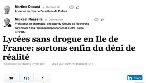 - "Alcool, cannabis: des risques à long terme sur le cerveau des jeunes" - 23 octobre 2012 Tribune dans le Téléscope
